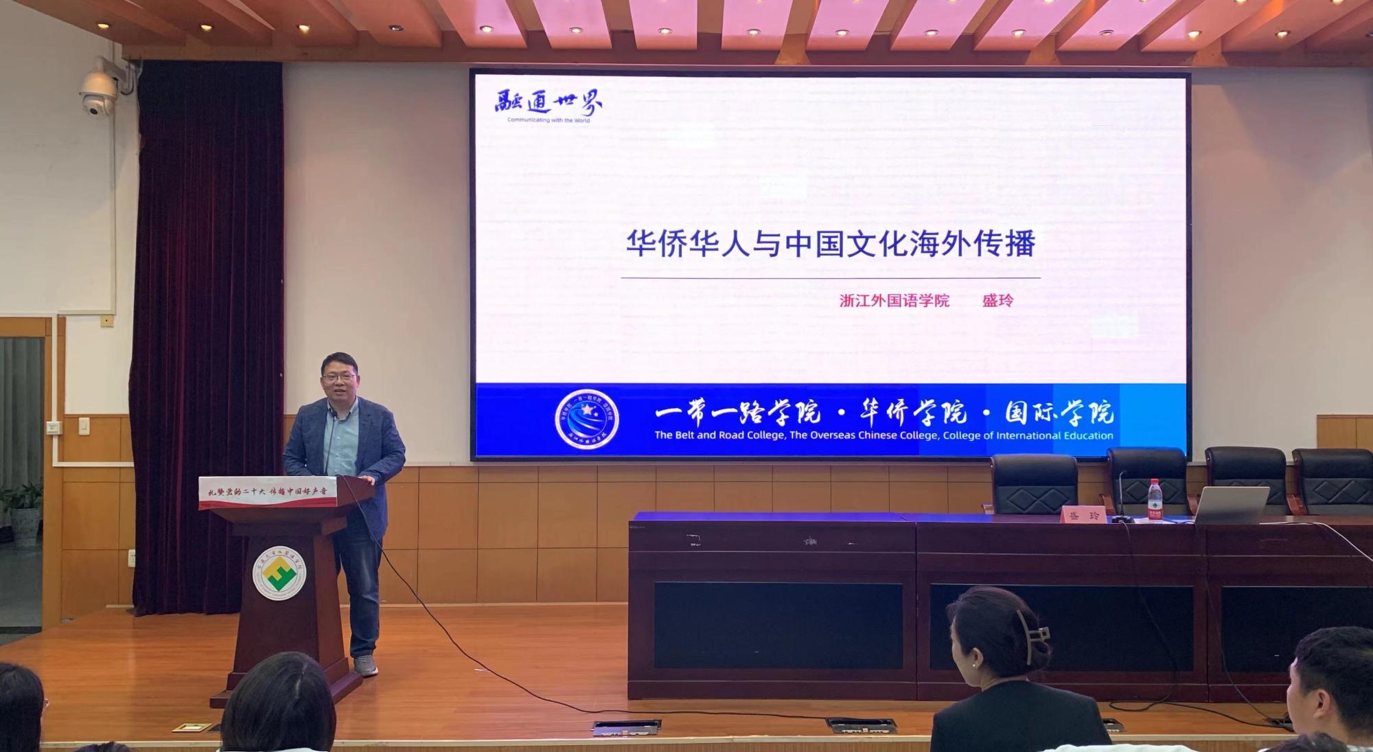 盛玲书记通过讲述非洲中国村的故事引入主题,就华人华侨的发展历史、浙江侨情的现状与特点,华侨华人传播的主要途径、传播的主要问题以及传播的现实意义做了详细阐释。他表示华侨华人对于传承和弘扬中华文化、促进文化交流和融合、增强中国文化软实力具有重要意义。盛书记特别强调,团结统一的中华民族是海内外中华儿女共同的根,博大精深的中华文化是海内外中华儿女共同的魂,实现中华民族伟大复兴是海内外中华儿女共同的梦。