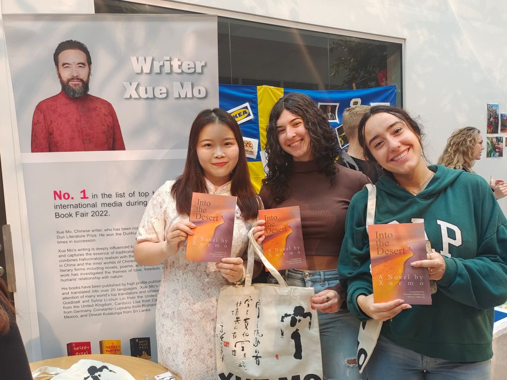 的交换生宋新月同学组织了本次国际日的中国主题推广活动。她表示,《沙漠的女儿》英译本带领来自不同文化背景的读者穿越中国辽阔的大漠,共同探索人性、生命、希望、友谊与爱等人类共同关注的话题。她说,“在瑞典交换学习期间,我接触到了来自瑞典、德国、西班牙等不同国家的学生,发现欧洲的老师和同学对中国文学了解不多。我希望借助这次活动,向国际友人展示中国文学作品,叩开他们对中国这个东方古国文明的好奇之门,为他们了解中国、了解中国文化打开新的窗口” 。