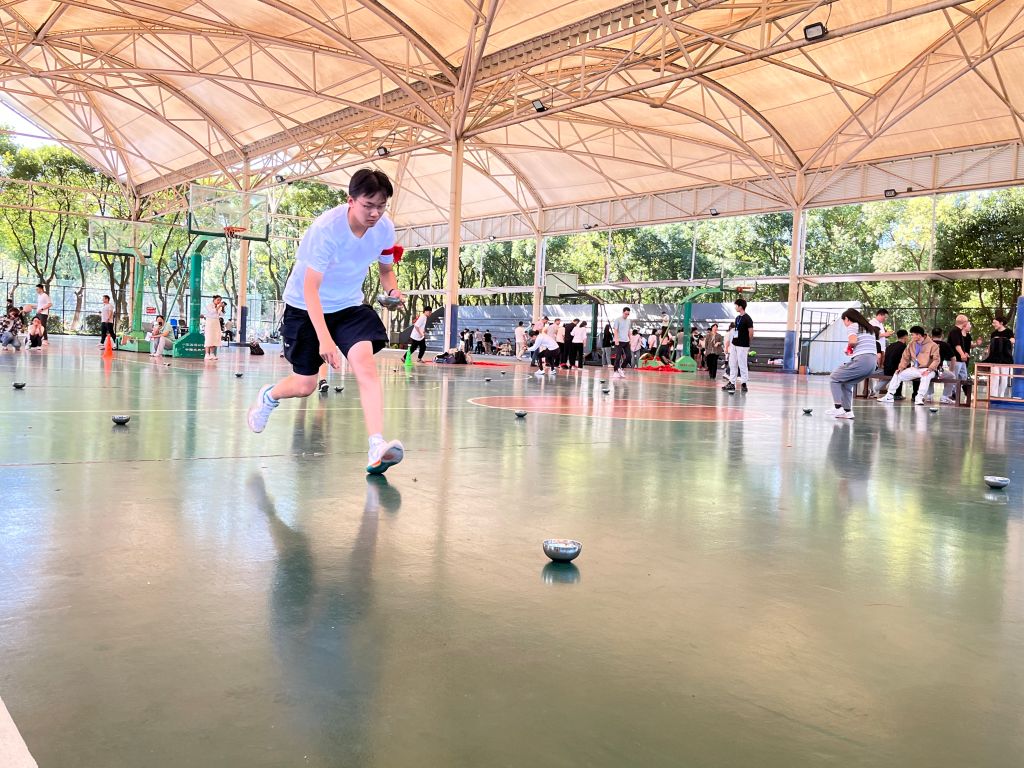 的教职工们都踊跃参与,展示了外院的激情与活力。赛前,教职工们在场外做各种热身训练,跃跃欲试;比赛开始后,他们更是全情投入、大显身手。最后在全体参赛教师的共同努力下,外院在本次比赛中获得了喜人的成绩:在团体赛上,“蛟龙出海”和“抢收抢种”等趣味项目获得了优秀奖,乒乓球团体赛中名列前八,8×50米迎面接力名列第三。在投篮、跳绳、沙包等个人赛项目中,各参赛教师也都取得了优异的成绩。