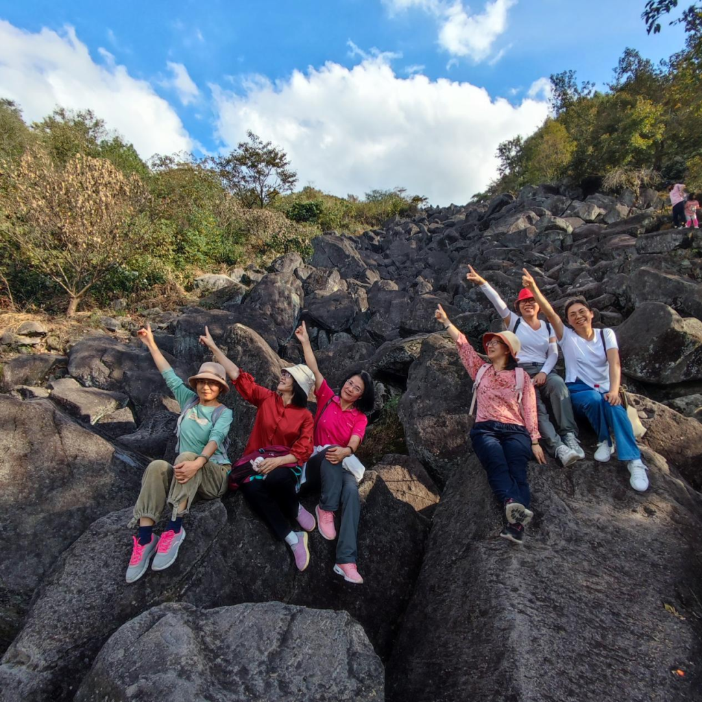 背靠大山,脚下层层梯田,平台上靓丽身姿,老师们的身影在覆卮山景区里留下了一道卓越的风景线。