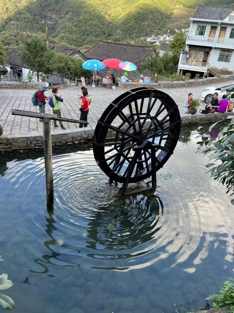循着山路,迈着坚实的步伐,外院游客们走进东澄古村。这座曾被提名“中国最美古村”的村落,海拔380米,位于覆卮山之巅,与千年梯田、万年石浪、高山草甸构成了一副静谧美好的山水画卷。幢幢石屋依山而建,质朴中蕴含古韵,依山而上的村道由鹅软石铺就,沿途溪水潺潺,幽远中情趣盎然!