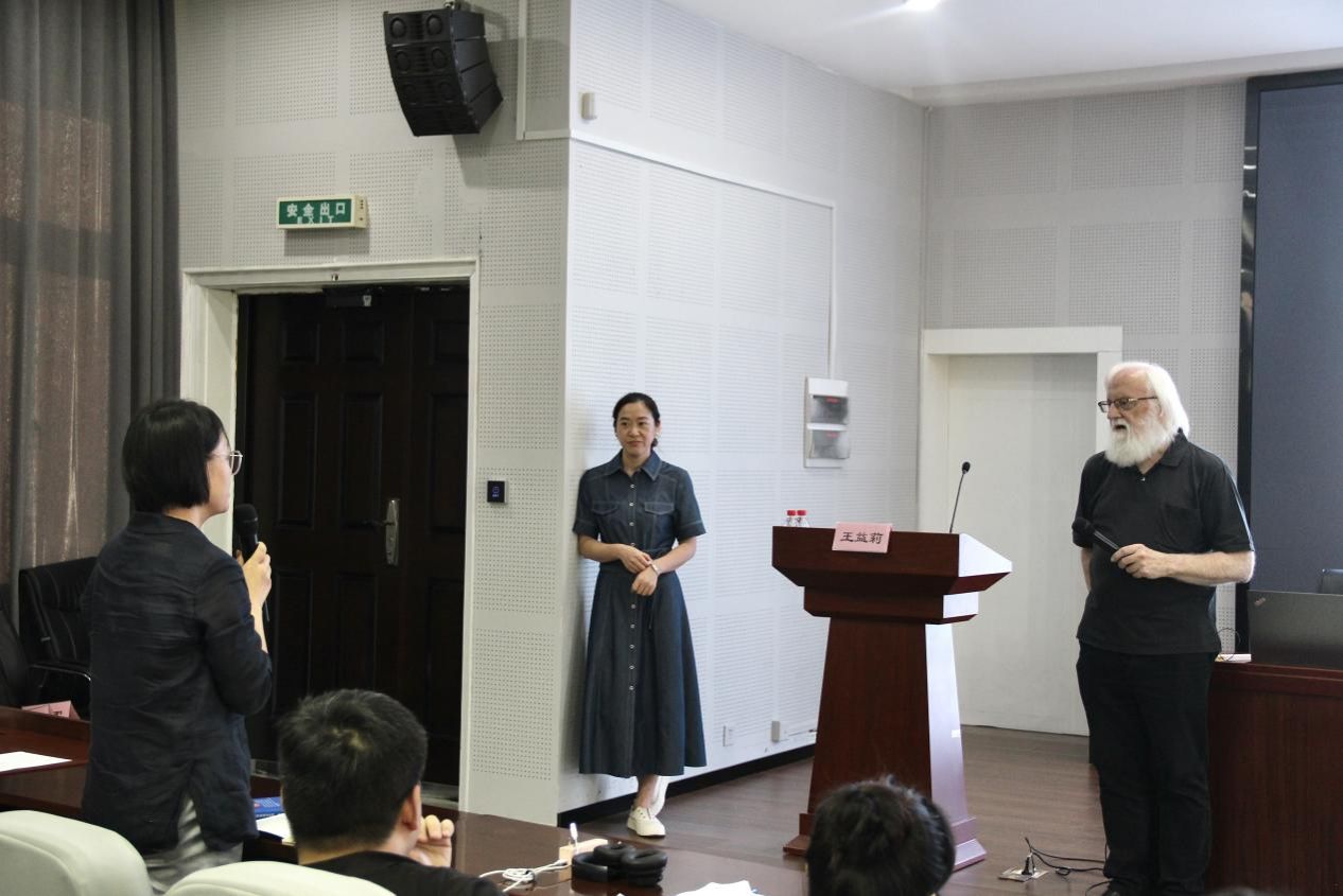 新入职教师於伟澄博士、李婧博士、陈高雅博士分别汇报研究课题。Gambier教授针对中国文学外译、国家形象构建等课题进行点评,就如何精准界定核心概念、创新研究视角并形成可国际发表的成果,提供了细致入微的指导。