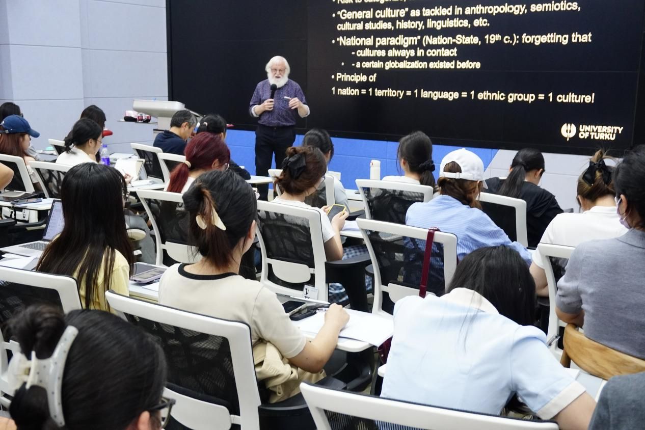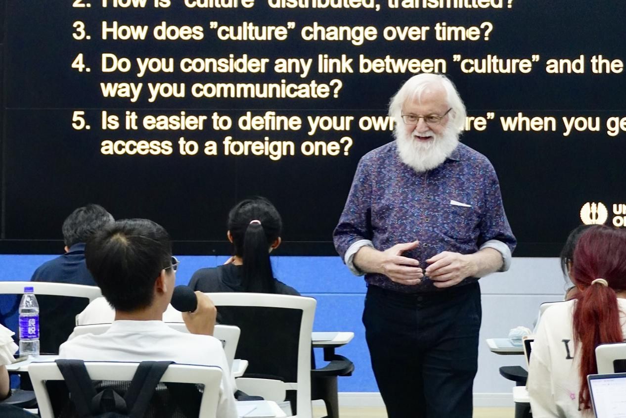 在技术演进与全球化浪潮中,“文化”概念正经历深刻重塑。10月16日下午的讲座《今日文化:一个模糊的概念》(Culture Today: An Ambiguous Concept)由符荣波教授主持。Gambier教授引领师生展开深度学术思辨,剖析“文化”如何从传统的、自上而下的民族身份象征,演变为动态、多元且充满模糊性的复杂综合体。他倡导师生以跨学科视角,关注语言转换如何塑造文化传播路径,反思“文化如何被定义、转述与再生产”,为理解当代翻译实践提供关键启示。现场师生就文化全球化中的认同焦虑、翻译在文化调解中的功能、语境差异对话语表述的影响等议题热烈交流。Gambier教授结合学术积淀与实践洞察作出精辟回应,并鼓励青年学者以跨学科视野审视当代文化命题。