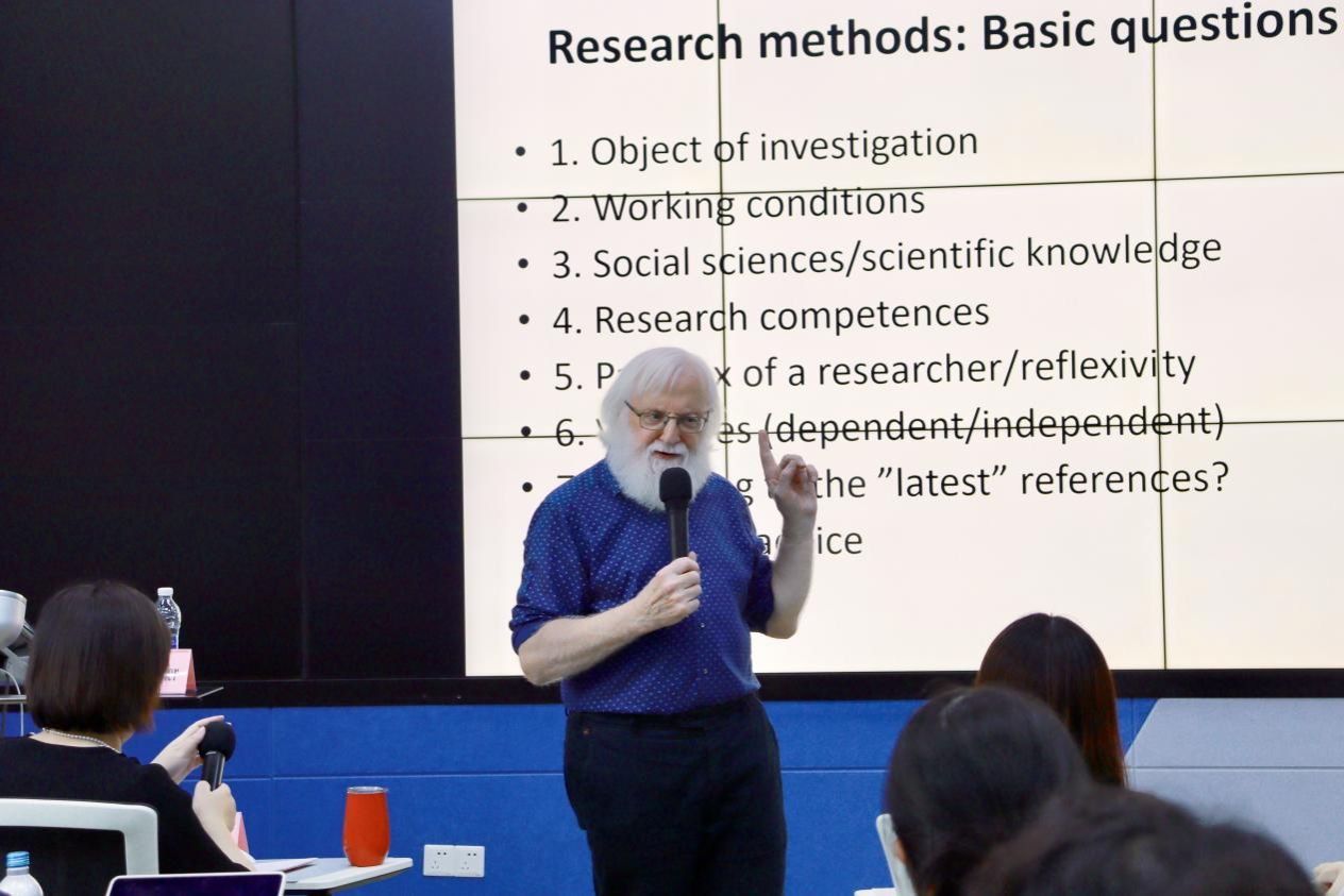 系列讲座于10月13日正式启幕。首场讲座《研究方法:基本问题》(Research Methods: Basic Questions)由贺莺教授主持。Gambier教授深入探讨了如何界定研究的“科学性”与规范学术写作。他结合数十年学术积淀,系统阐释科学性的四大支柱:系统性、逻辑性、集体性与诚实性,并着重强调:坚守学术伦理底线要求学者必须如实报告无法完美诠释的数据。此外,教授层层剖析了核心概念界定、研究现实约束、方法论多样性及研究者自反性等关键问题,提供了从方法论设计到论文撰写的全方位实用指导。