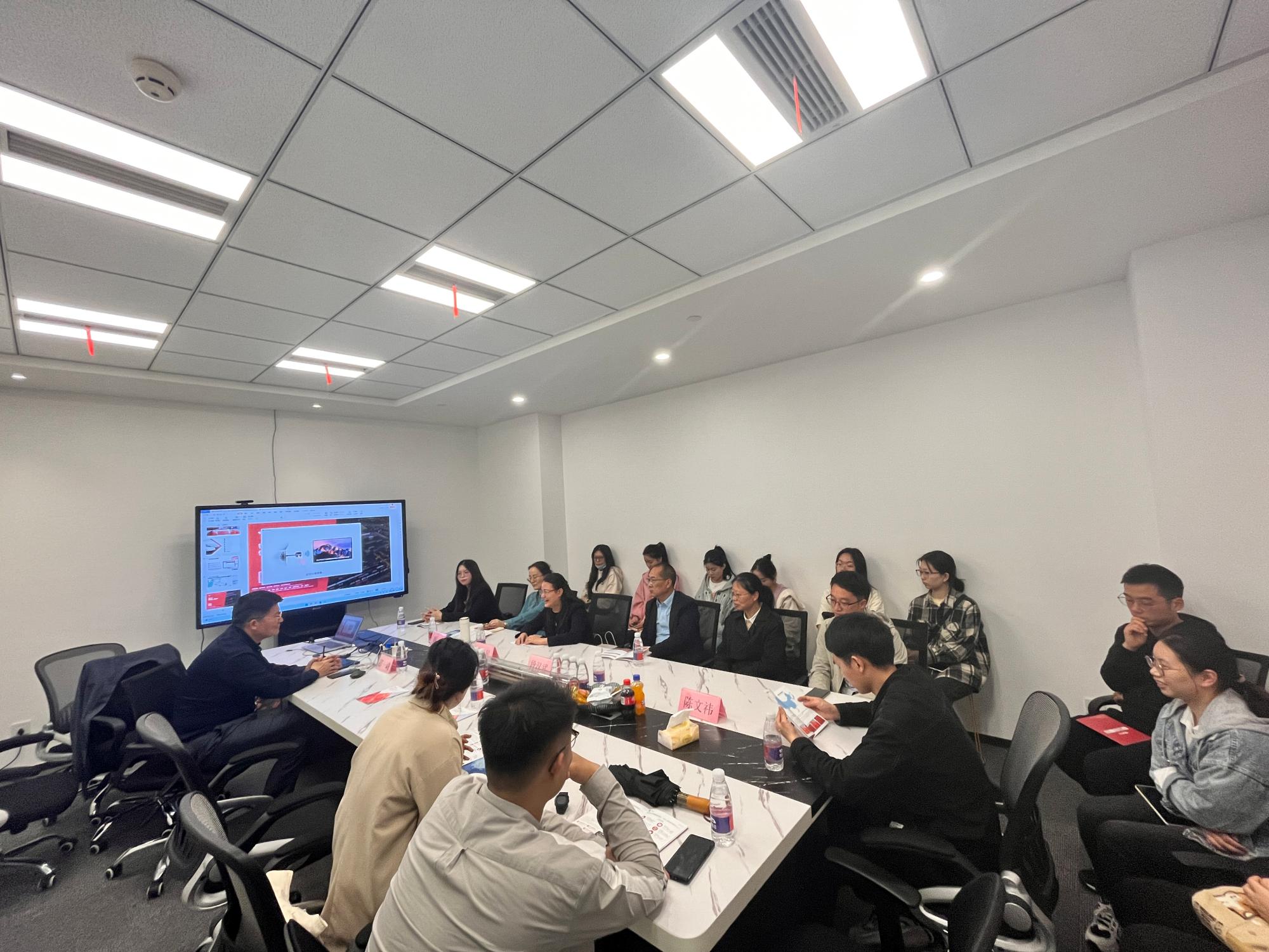 学院师生与企业代表在会议室座谈,就公司发展基本情况与前景以及91porny