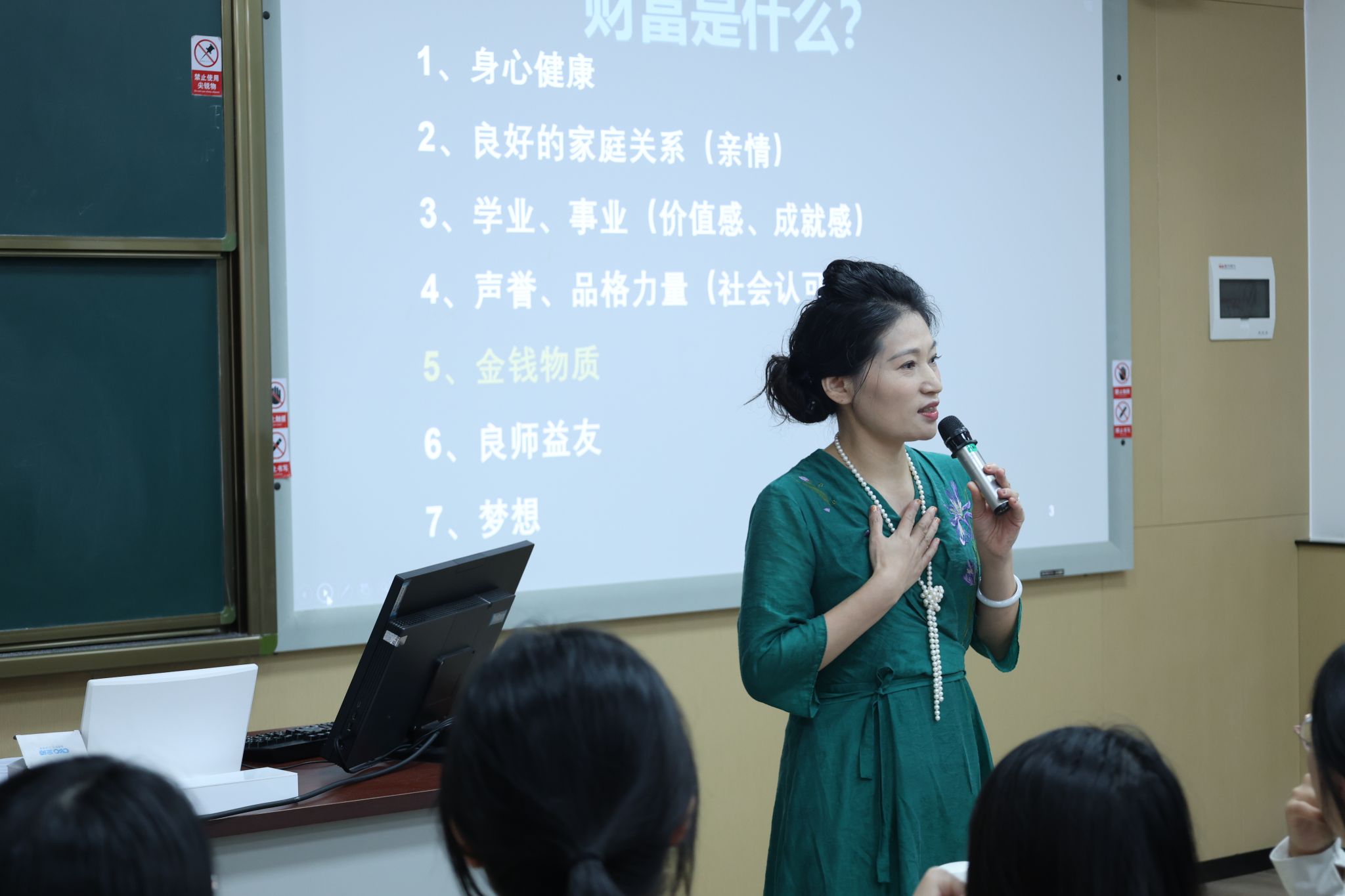 1996级英语专业校友、家业关系赋能专家、关系心学开创人、国家二级心理咨询师组织、家庭系统排列导师、NGH催眠培训导师、坤森心智学院创办人、加拿大曼尼托巴大学Asper商学院访问学者、MBA管理硕士庄雪芬应邀主讲“财富与你的距离”专题讲座。91porny