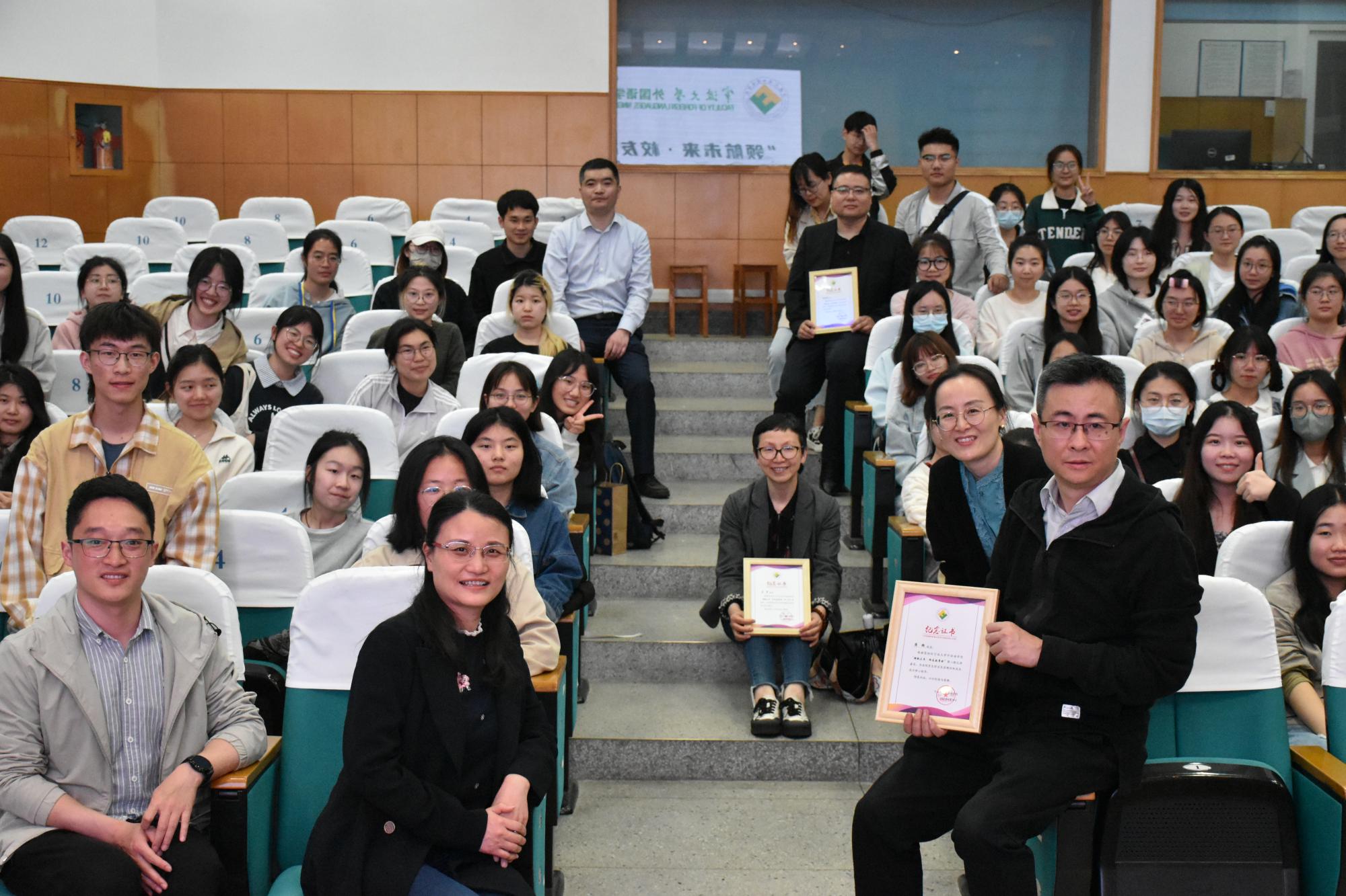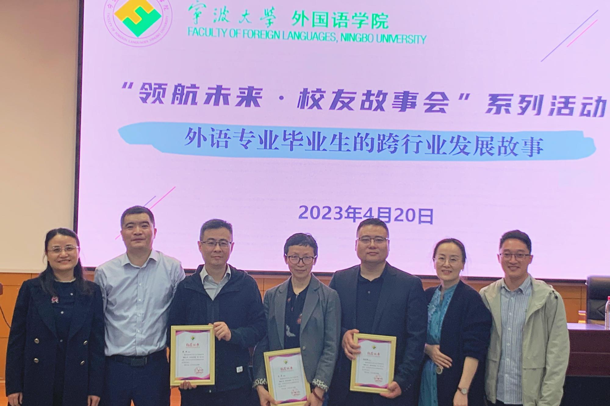 1986级外语系校友吕萍、1992级外贸英语校友蒋鹏、1998级日语系校友魏建明、1996级日语系校友高强应邀担任主讲人。学院党委书记翁华星、副书记胡佳、校友工作联络人和100余名本硕学生参加本次活动。