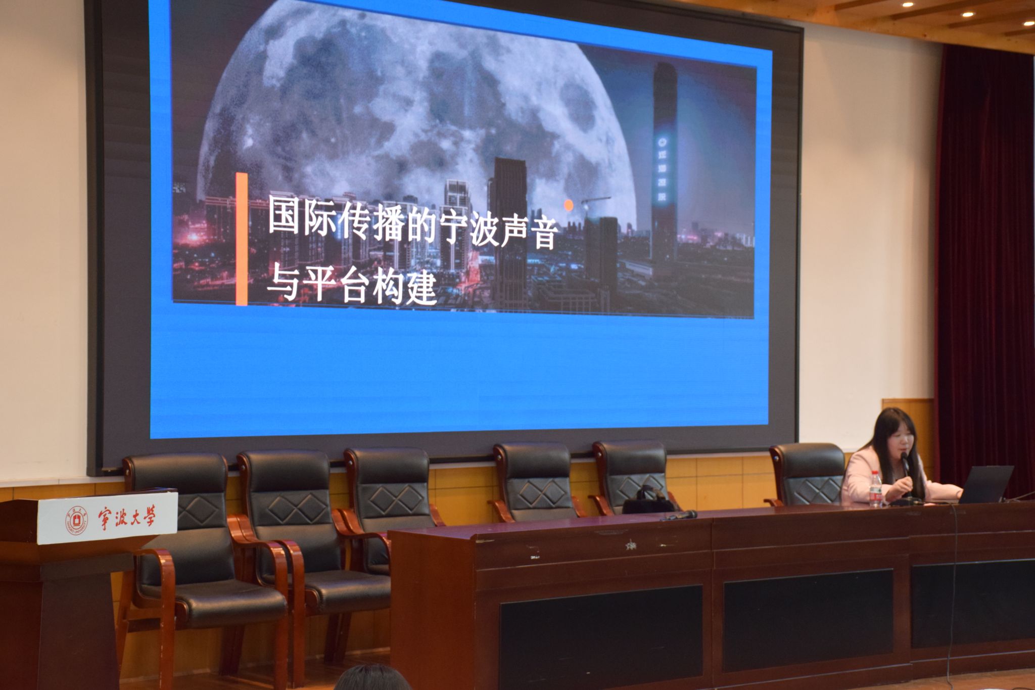 党委宣传部郑俊朋老师视频发言。宁波报业汤圆国际传播中心英文记者潘雯婕受邀出席并做主题讲座。