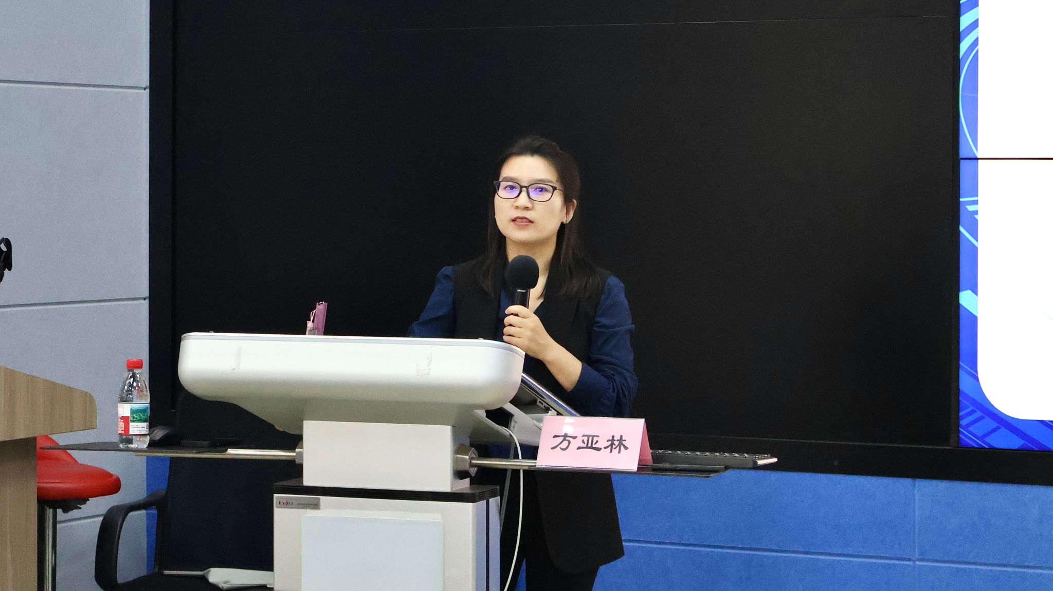 讲座由贺莺教授主持,特邀环球网AI事业部的高级讲师方亚林老师作为主讲嘉宾。方亚林老师凭借其深厚的行业经验和丰富的实战经历,深入阐释了DeepSeek等先进AI工具在高效产出高质量视频内容、实现数字人动作复刻、构建本地知识库及自动化工作流程等方面的关键应用。她通过具体的案例展示,揭示了AI在跨境协作流程图制作中的精确高效性,以及在小红书图文批量生成场景中,如何实现从文案创作到自动化排版的全流程解决方案。