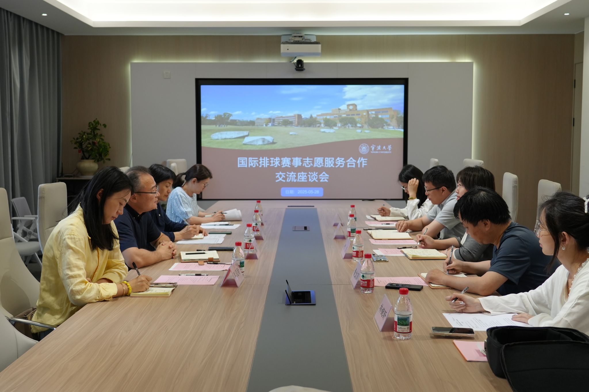副院长贺莺主持,北仑区文化和广电旅游体育局副局长、党委副书记姚波,副局长章春华,北仑区委社会工作部副部长李莹琦,赛事接待部副主任梅燕出席会议。学院方面,学生工作负责人冯能跃、翻译硕士教育中心主任黄大网、研究生辅导员倪嘉婕、翻译硕士教育中心秘书林婉昕等相关教师与会。此次会议旨在为即将举行的2025世界排球联赛男排总决赛(中国宁波北仑)做好语言服务筹备,同时搭建面向未来的持续合作机制。