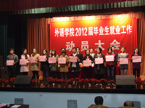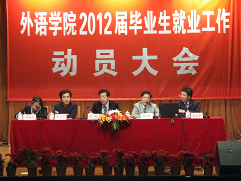 下午15:00,外语学院2012届毕业生就业工作动员大会在锦绣小剧场顺利召开。大会由院党委书记戚锦阳主持,91porny