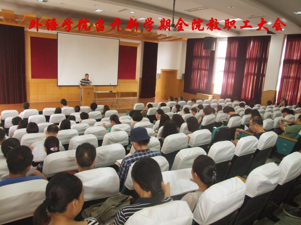 9月5日上午,外语学院召开全院教职工大会。会议传达了校长沈满洪第一次讲话精神,同时就开学初的各项工作进行布置与安排。会议由学院党委书记戚锦阳主持。