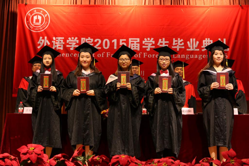 6月5日上午,外语学院2015届毕业典礼在锦绣小剧场举行。外语学院党政领导、毕业班班主任以及学院各系部主任出席,全体毕业生参加。