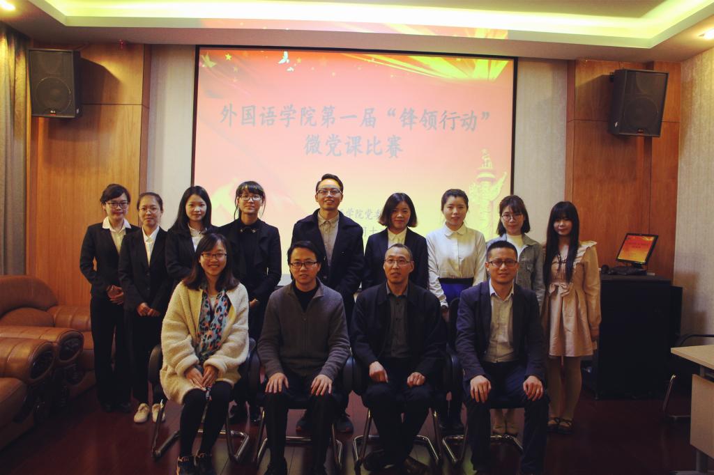 第一届“锋领行动”系列活动启动仪式暨微党课比赛在外语楼附楼107举行。学院党委委员、师生党支部书记和党员、入党积极分子代表参加。