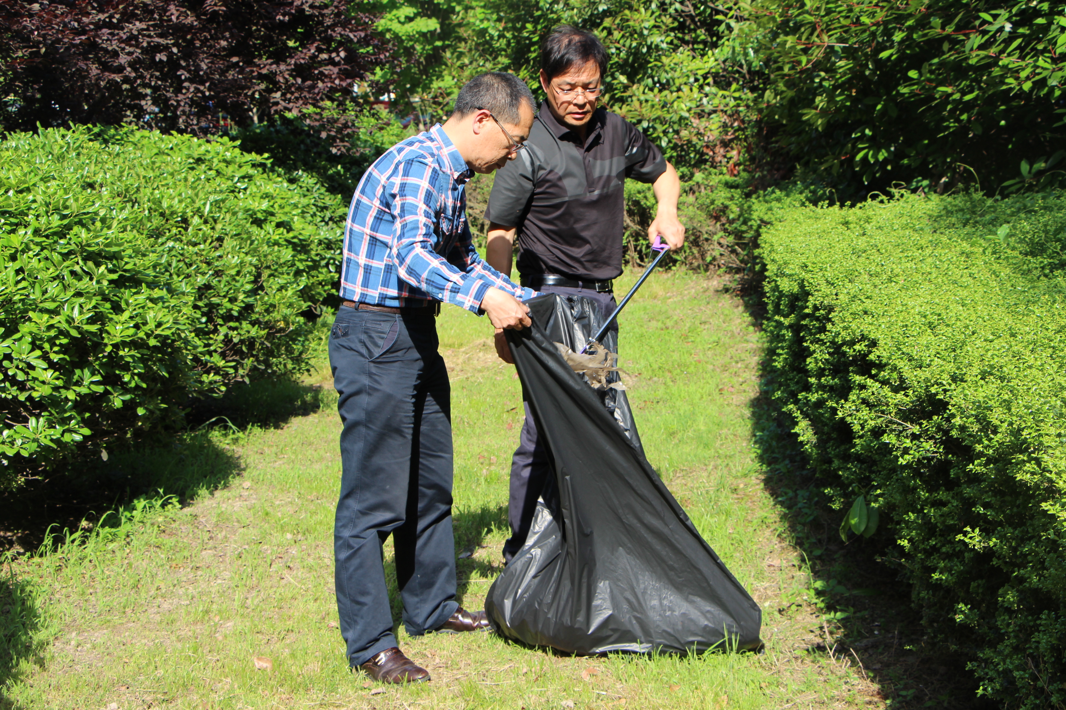 全体教工党员发起“共建美丽外院”党员义工行动,40余名党员义工在学院党委领导班子的带领下对学院卫生包干区和卫生死角进行全面大清扫。经过一下午的劳动,学院大楼焕发新容,美丽再现。