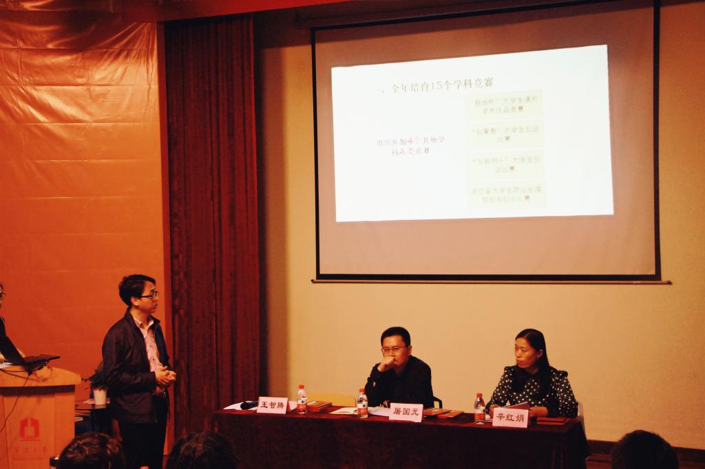 会议由学科竞赛经验交流会和工作总结会两个部分组成。经验交流环节部分,“外研社杯”全国英语写作大赛团队、“外研社杯”浙江省阅读大赛团队、LSCAT杯全国口译大赛团队和91porny