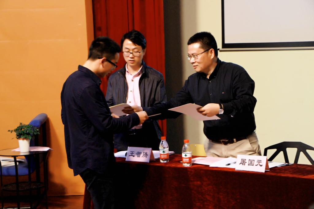 学科竞赛工作总结暨学科竞赛团队成立仪式。学院两项A类学科竞赛负责人林艳和马钊老师各自介绍了带领的演讲和写作竞赛团队的运行情况,向同学们提出了以真诚打动人心,提高个人作品的辨识度,发自内心热爱外语几点建议。接着,学院党委副书记王智腾介绍A、B类学科竞赛培养方法,副院长辛红娟介绍笔译、口译、写作和演讲与辩论四个竞赛团队的组建情况和运行方法,并为所有的团队成员和指导老师颁发证书与聘书。最后,院长屠国元总结发言,向各团队提出了在新赛季继往开来、再创佳绩的美好祝愿。