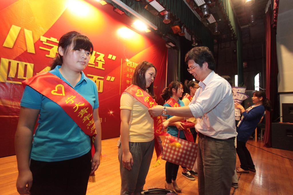 暑期社会实践出征仪式并被授予两项计划志愿者绶带和礼物。孙迎依将赴西藏那曲、陈佳慧将在本月出发赴新疆阿克苏地区进行为期1年的志愿服务工作。