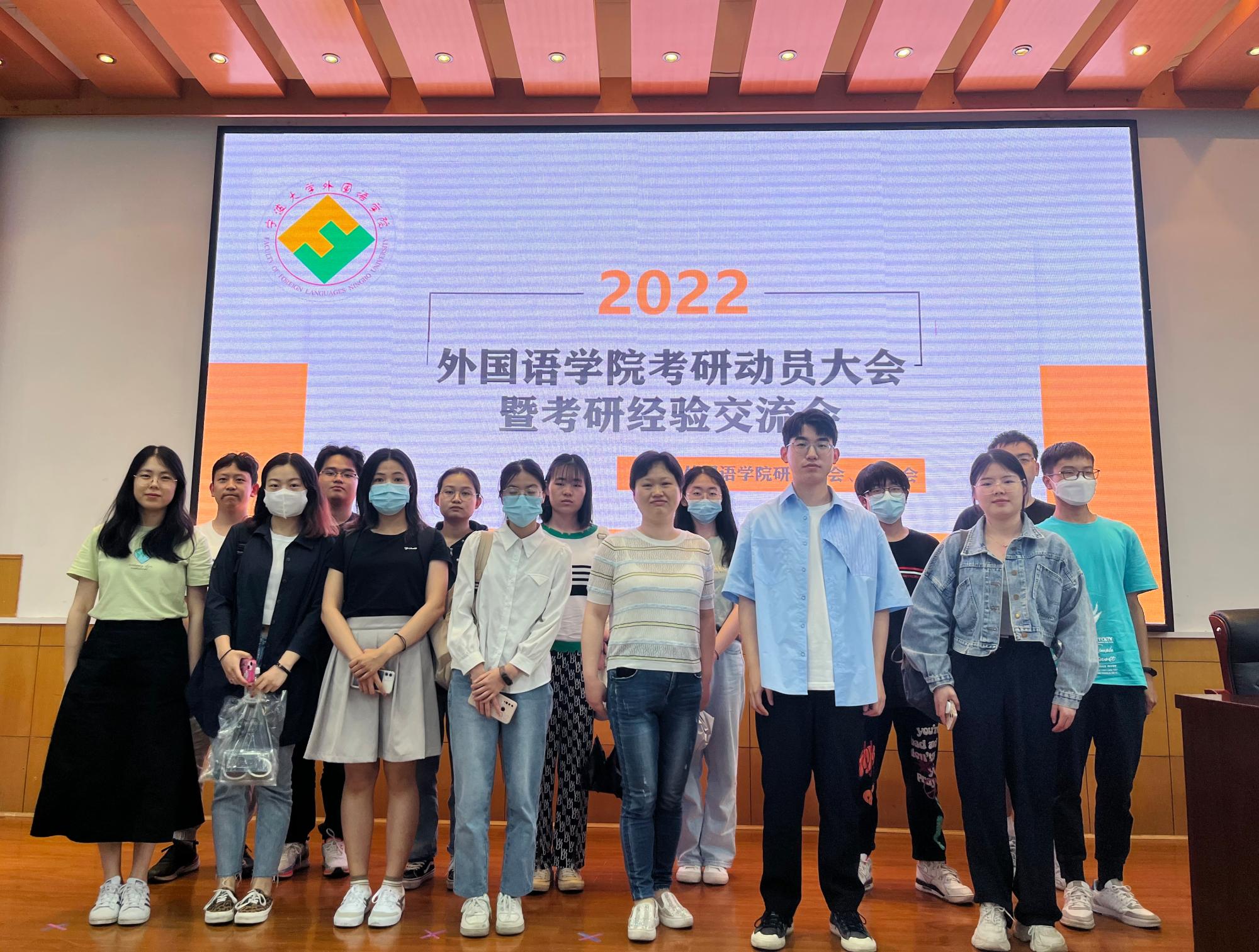考研动员大会暨考研经验交流会。英语系副主任樊娜希、学工办陈文祎、五位考研录取学子及2019级、2020级本科生参加会议。
