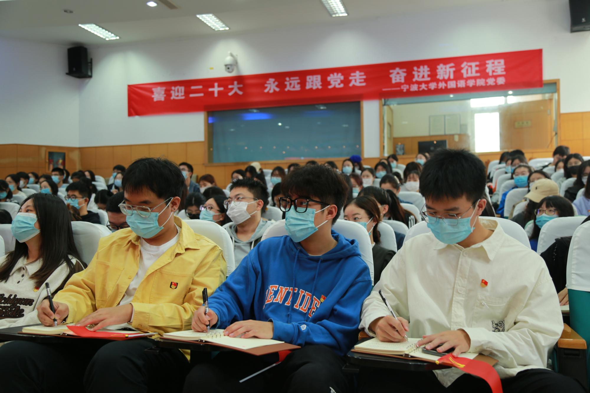 学院党委副书记、纪委书记 胡佳:今天,我与学院200多名师生党员和团员青年们一起集中收看了党的二十大开幕会盛况,认真聆听了习近平总书记的报告。报告中不断出现的提振人心的金句、引人关注的提法,让我们一次次为之感动、备受激励。过去十年,党领导中国取得的历史性成就,我们每个人都感同身受;新的伟大征程上,以中国式现代化推进中华民族伟大复兴的光明前景更让我们坚定信心、踔厉奋发。作为高校基层党建和思政工作者,我们将认真学习贯彻党的二十大精神,坚守为党育人为国育才的初心使命,聚焦立德树人,守好“红色根脉”,进一步打造专业度更强、辨识度更高的党建引领思政育人体系和品牌,为培塑具有深厚家国情怀、广阔国际视野、扎实专业能力和跨文化交流能力的新时代外语人贡献力量。
