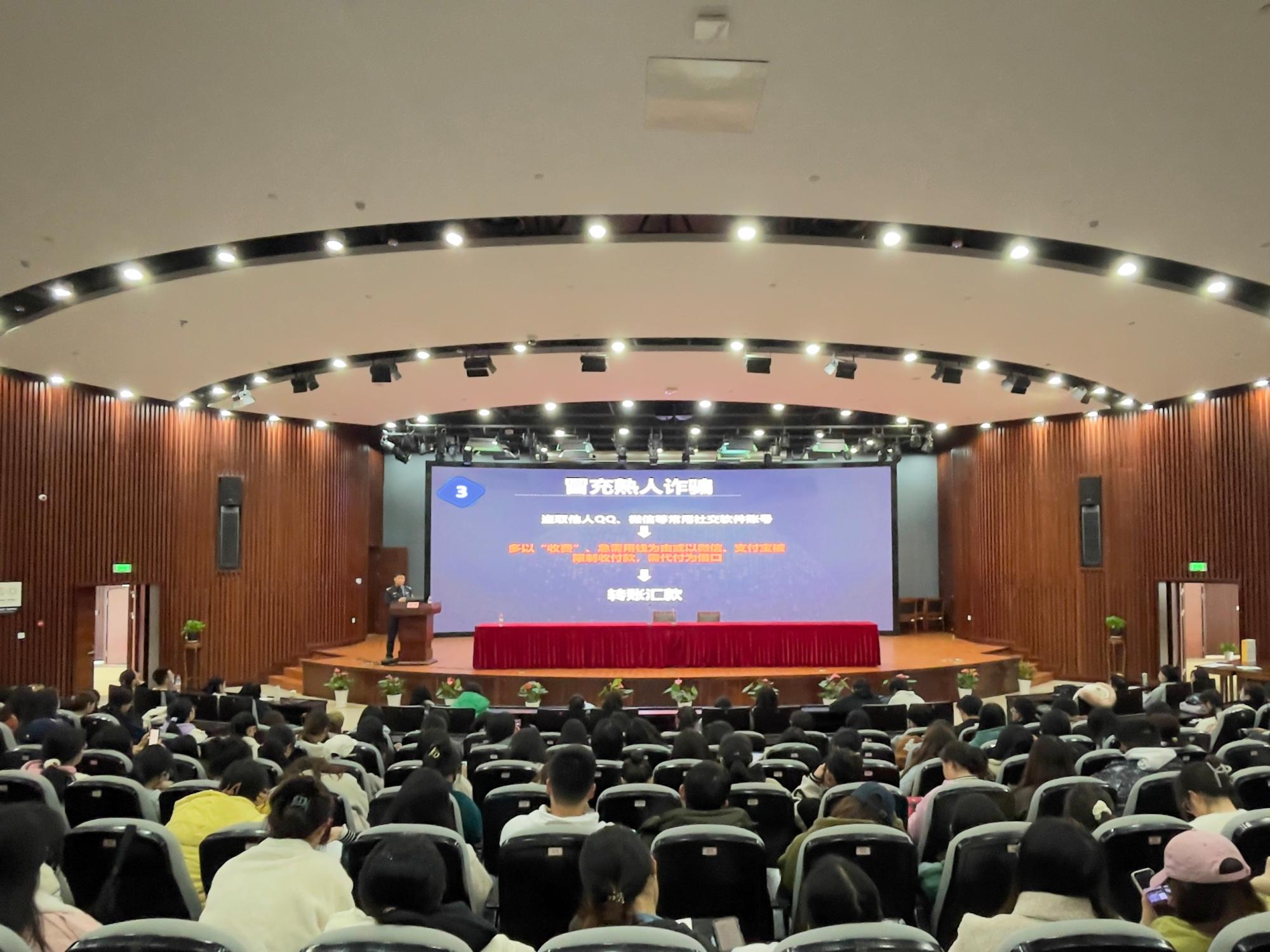 邀请宁波市反虚假信息欺诈中心金牌宣讲员、宁波市公安局江北分局文苑派出所王凌警官,在真诚图书馆报告厅为学院在校学生带来了防范电信网络诈骗的专题报告。学院党委副书记胡佳、辅导员与500余名学生参加了活动。