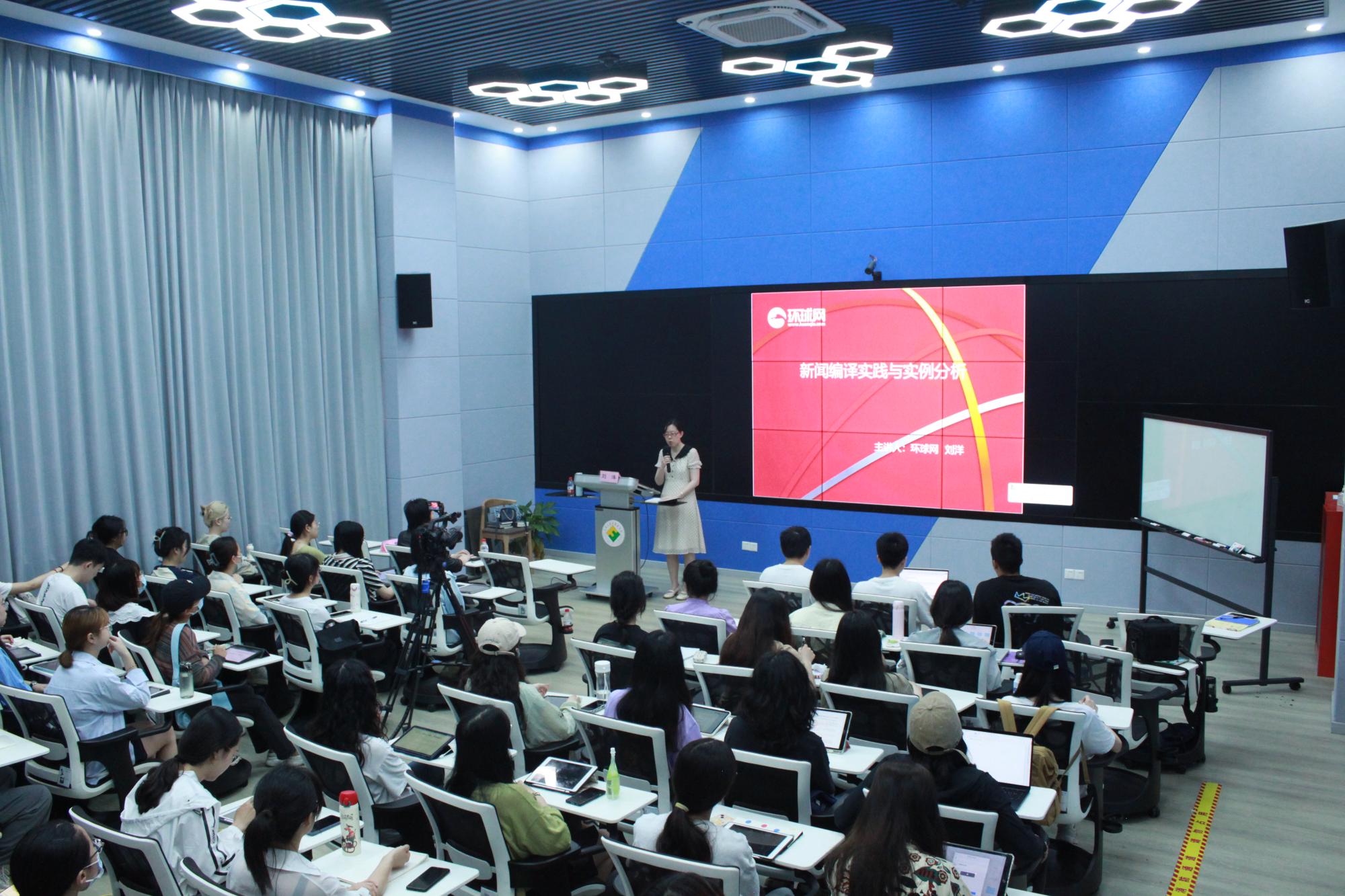 《网络新闻编译》课堂,与选修课程的56位同学进行面对面深度交流。