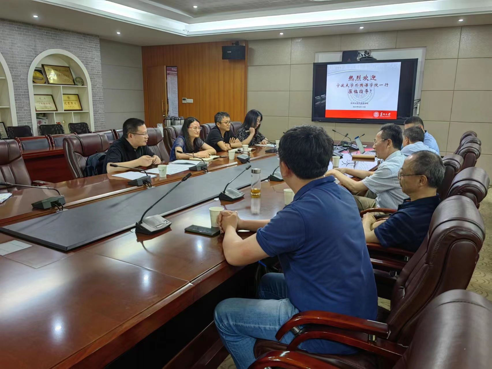 党委书记严冬生、院长朱新福、副院长王军、孟祥春和陆洵参加了座谈会。在座谈中,严冬生和朱新福介绍了苏州大学及苏大91porny