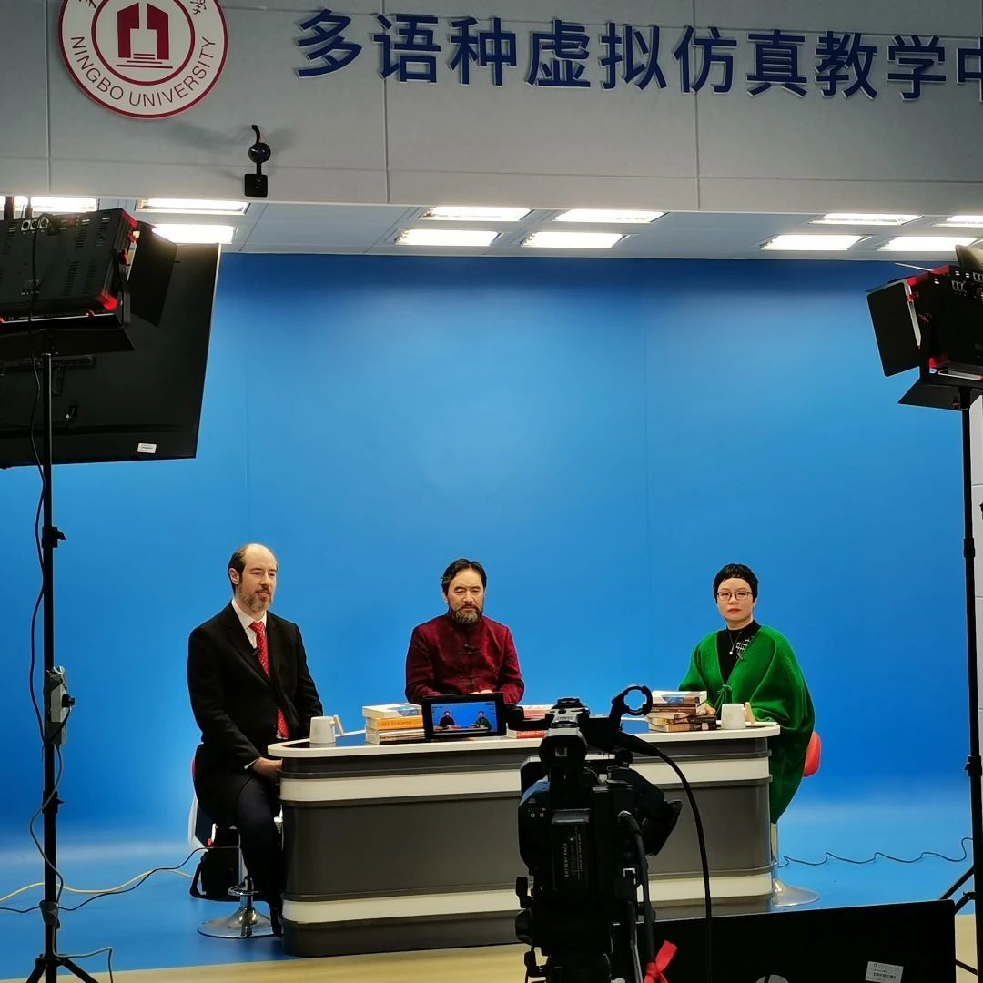 参加录制。主办方中国外文局翻译院院长黄玉龙、中国外文局翻译院翻译行业工作部副主任杜楠、人民文学出版社外国文学编辑室副主任陈旻等领导来甬指导项目拍摄。