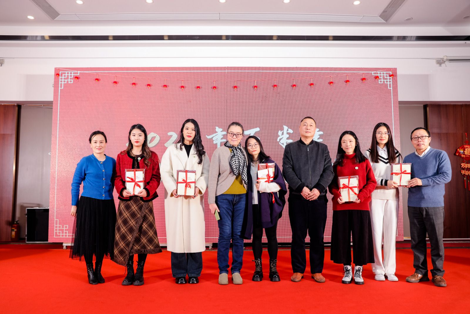 联谊会上,学院为王红阳、王青梅两位老师举办荣休仪式,特聘院长屠国元、学院党委书记翁华星为两位老师颁发荣休证书并献上鲜花,英语系主任李昌标、大外部主任杨廷君为她们送上真诚敬意和美好祝福,感谢他们多年来的辛勤付出和无私奉献。学院为英语系张文雯、日语系刘梦如、德语系郭璐君、学工办辅导员范紫婴和倪嘉婕五位新教师举办入职仪式,学院党政班子成员为五位新教师佩戴院徽。张陟老师、张芸老师、杨建华老师、胡佳老师以职业导师身份送上了《习近平总书记教育重要论述讲义》和入职寄语,勉励新教师以赤诚之心拥抱教育事业,在平凡的岗位上不懈努力、创造佳绩。