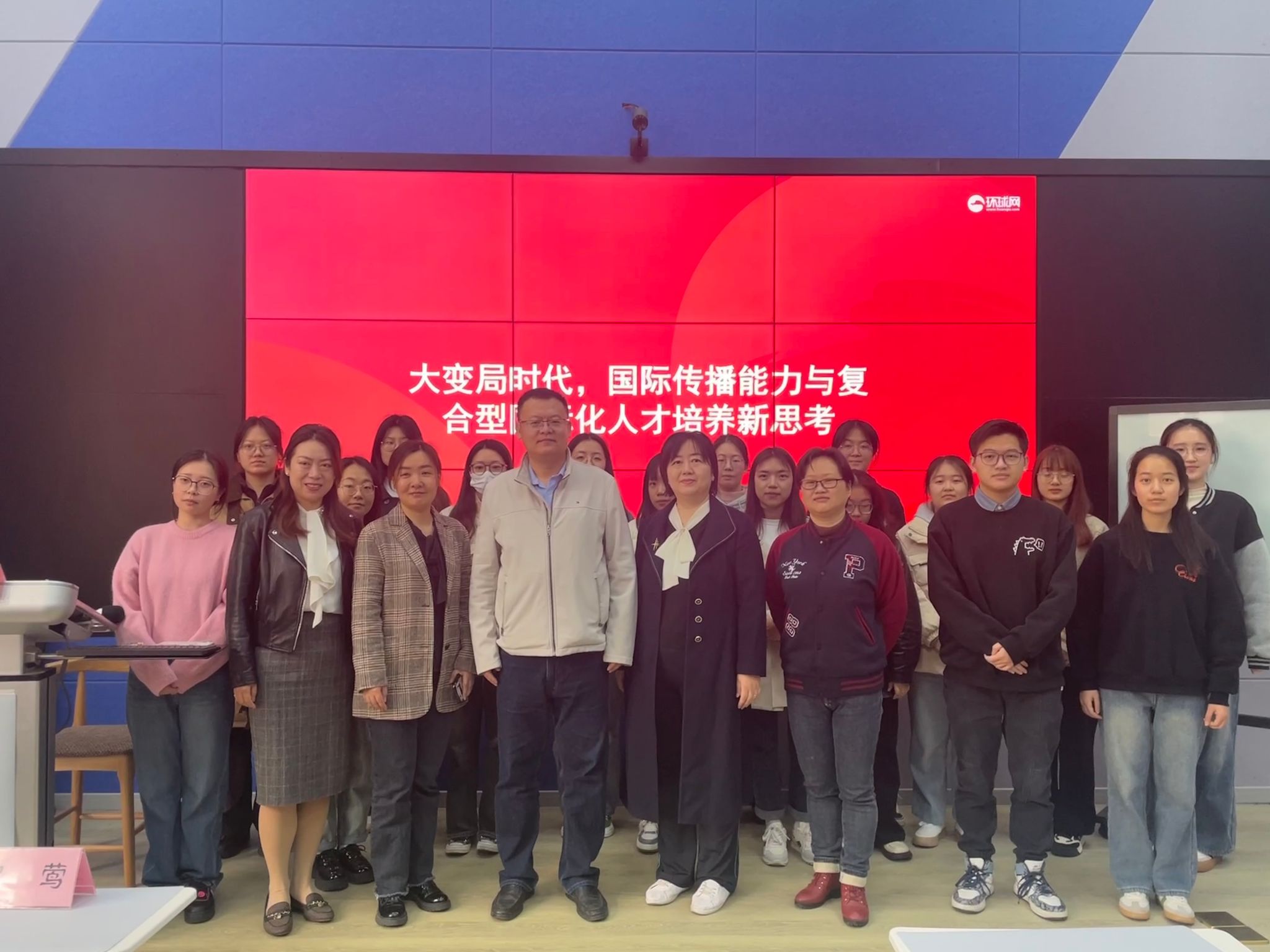 石丁总编辑随后前往多语种虚拟仿真实验中心参加了《网络新闻编译》专家进课堂活动,并以“大变局时代国际传播能力与复合型国际化人才培养新思考”为题与师生做主题分享。91porny