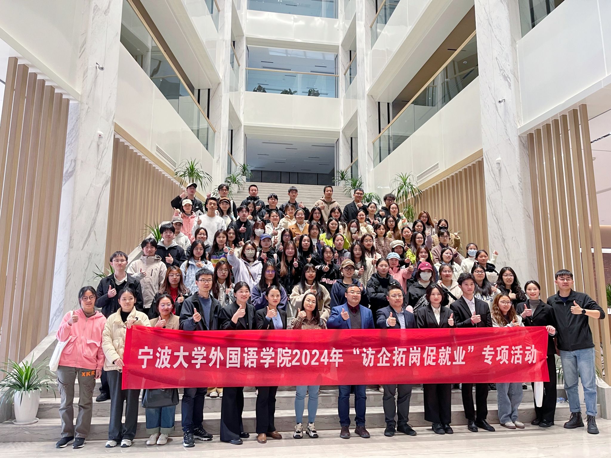 英语系主任李昌标、日语系副主任黄利斌、德语系郭璐君老师、就业辅导员檀学敏、学生代表近80人赴宁波金田铜业(集团)股份有限公司走访交流。集团人事经理孙娜君与人事主管黄怡怿亲切接待。