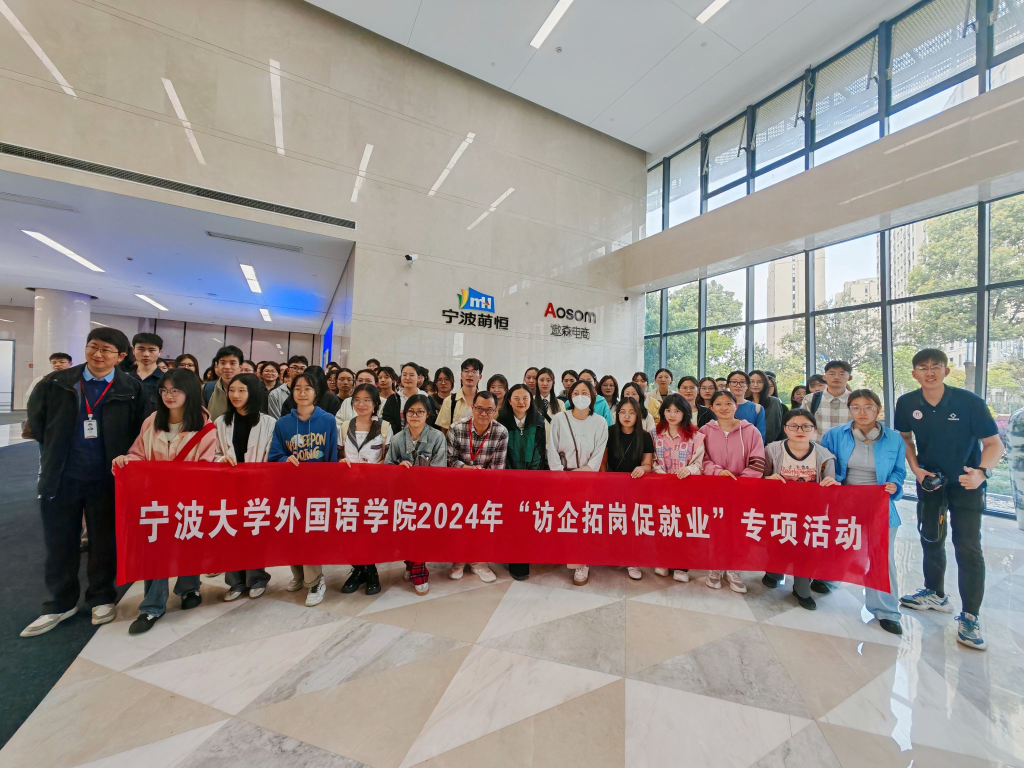 德语系副主任蔡玳燕、社会服务办主任任春静、就业辅导员檀学敏及85名学生代表赴宁波市遨森电子商务有限公司开展“访企拓岗”专项活动。遨森电子商务有限公司副总经理卢云峰、人力资源部经理倪成、邓海英亲切接待。