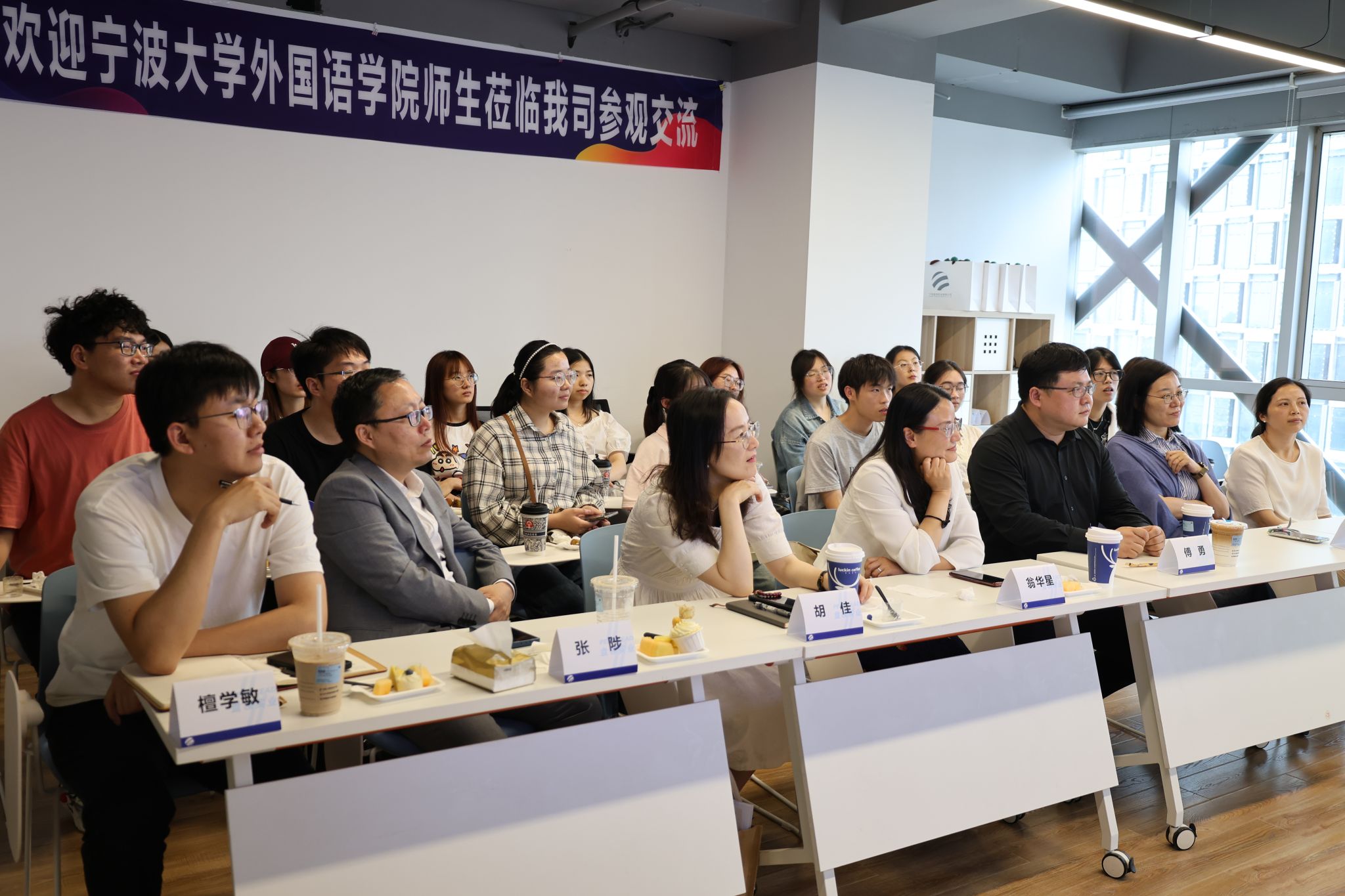 学院党委书记翁华星、党委副书记胡佳、副院长张陟还与企业代表就如何培养顺应社会需求的外语人才进行了深入的探讨和交流,并在专业实践、劳动实践、校外导师聘请等方面达成了合作共识。