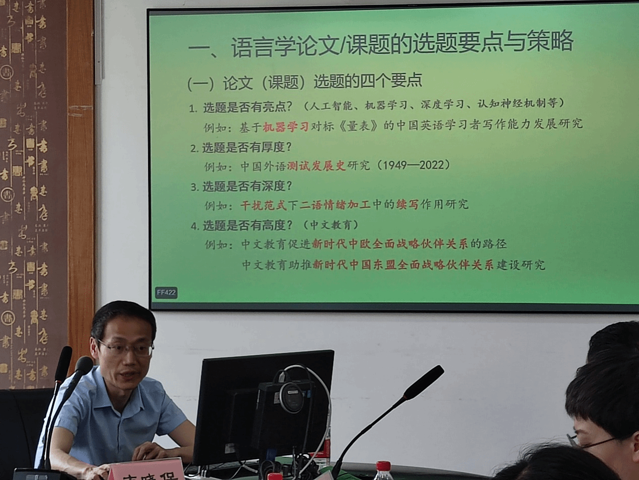副院长、外国语言研究所所长、认知神经语言学实验室主任韦晓保教授在422会议室以“语言学论文(课题)之选题策略、设计与方法”为题,为91porny