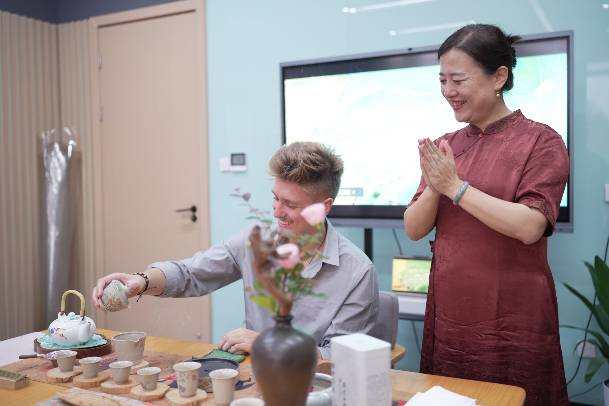 91porny 林艳副教授的“茗心雅叙——中国茶道美学与品鉴沙龙”主题讲座以一盏清茶为媒,向学生们介绍了茶道的历史与文化意蕴,并现场展示茶艺。波兰学生亲手尝试泡茶品茗,在茶香氤氲中体悟东方生活美学与“和敬清寂”的精神内涵。